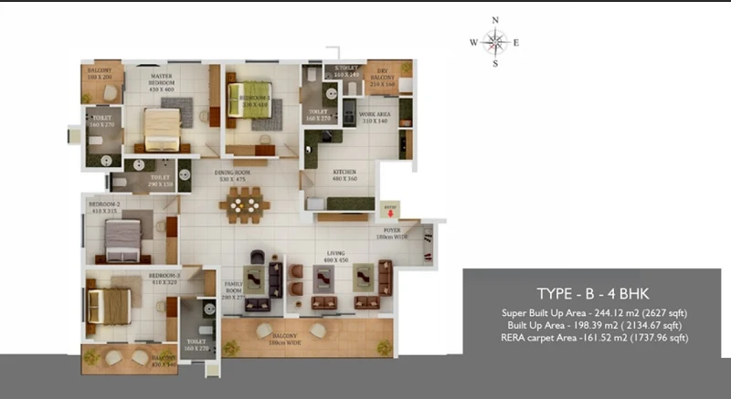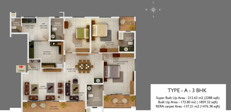 (Super Builtup Area) : 2288 – 4706 sq.ft