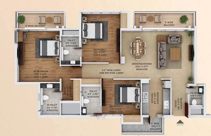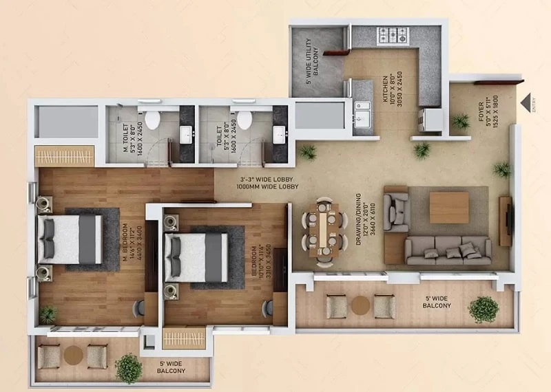 (Super Builtup Area) : 804 – 1185 sq.ft