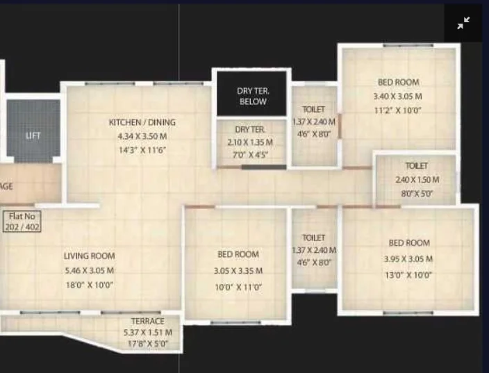 Configuration : 3 BHK Apartment