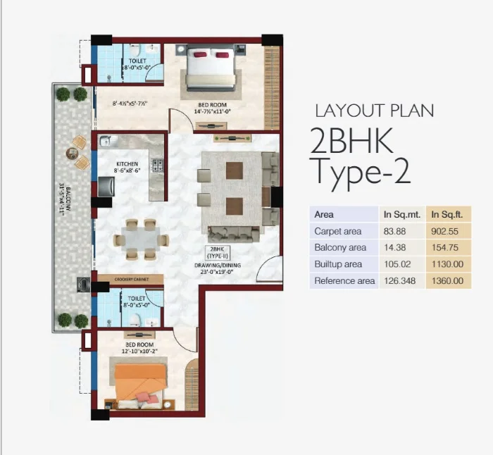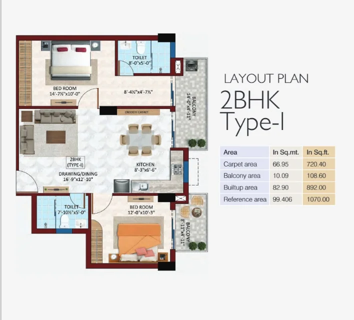 (Super Builtup Area) : 1070 – 1750 sq.ft