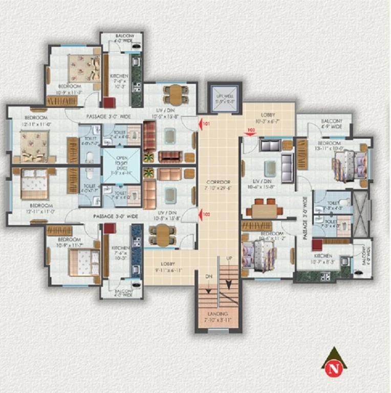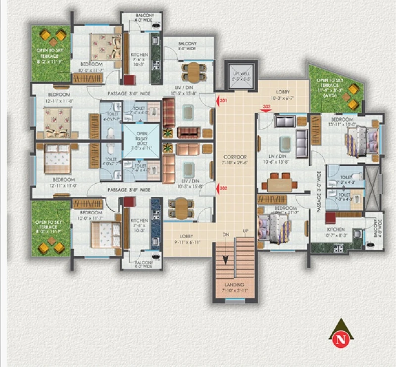 (Super Builtup Area) : 1024 – 1185 sq.ft