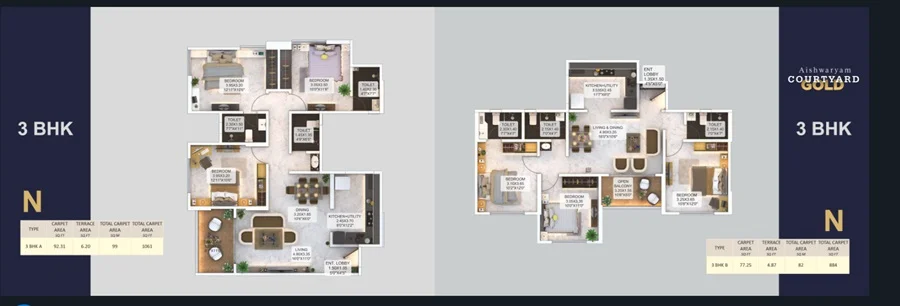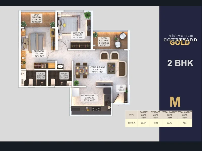 The floor plan of Aishwaryam Courtyard Gold enables the best utilization of the space with spacious balconies, standard kitchen size and high-quality fixtures. Location advantage of Aishwaryam Courtyard Gold is its proximity to Reputed Schools and Colleges. Unmatched connectivity from all the important landmarks and places. Easy access to everyday utility such as hospitals, schools, supermarts, parks, regional centers etc.