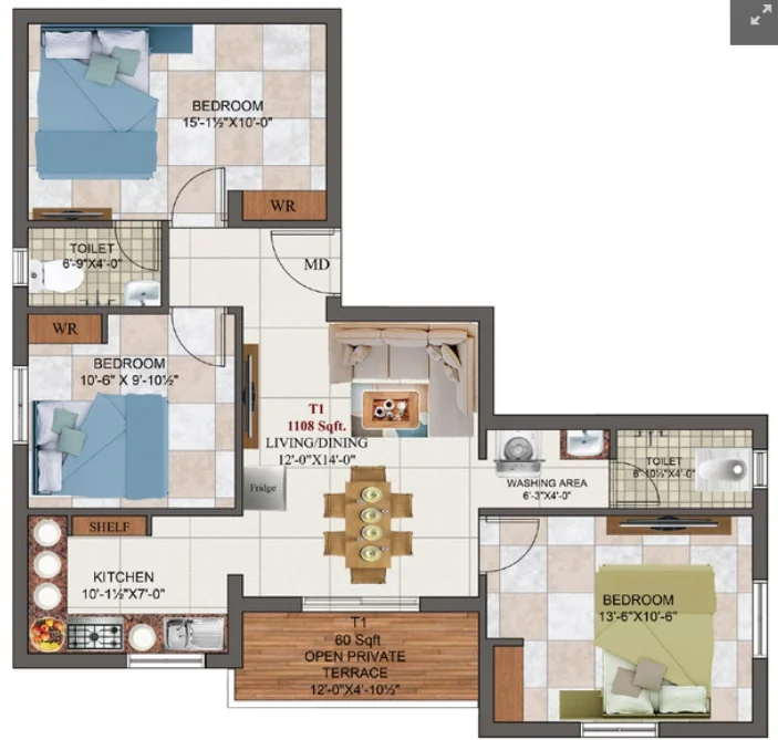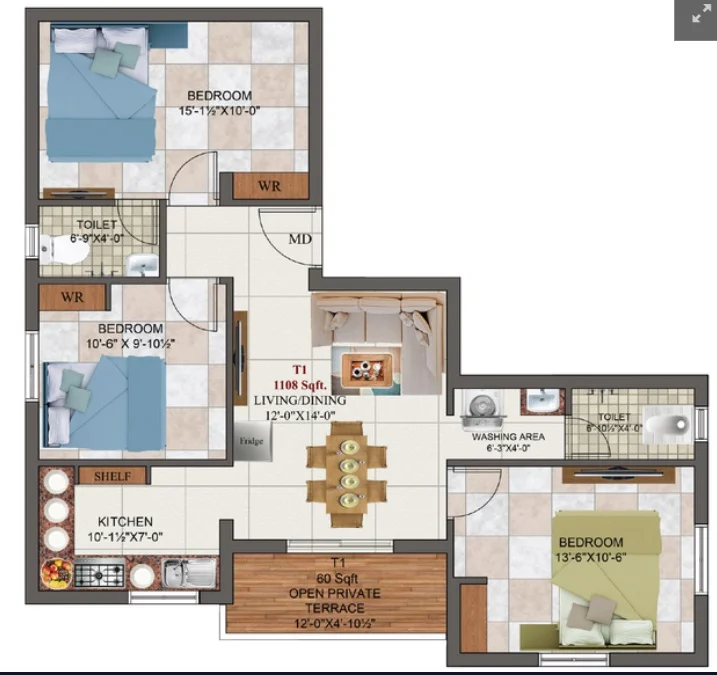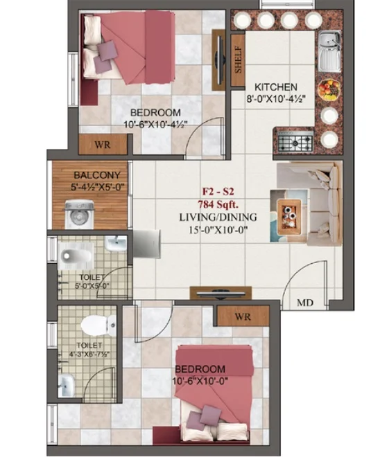 (Super Builtup Area) : 784 – 1392 sq.ft