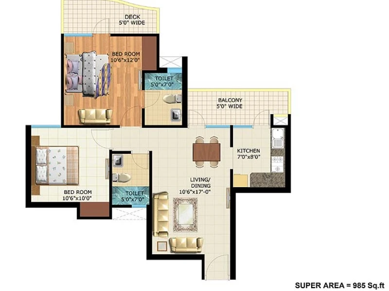 (Super Builtup Area) : 985 – 2680 sq.ft