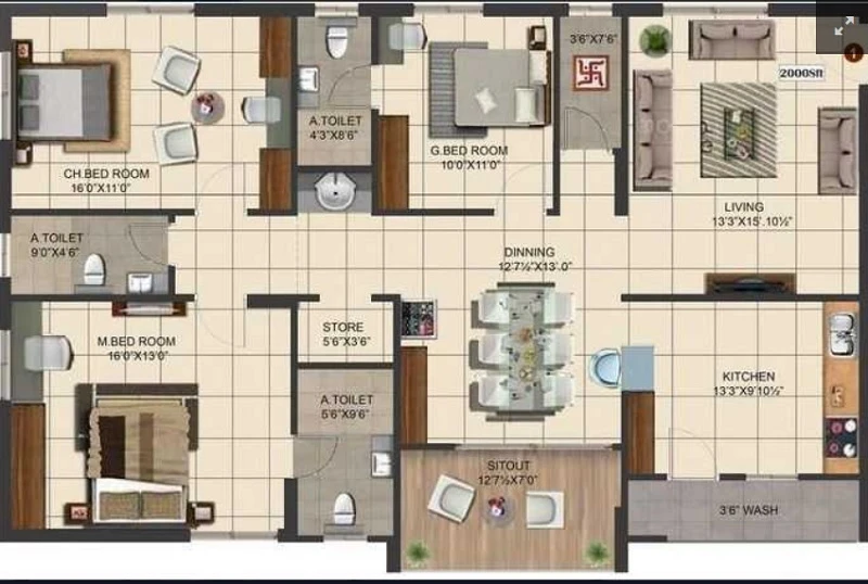 Super Builtup Area : 2000 – 2000 sq.ft