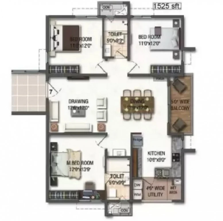 Super Builtup Area : 827 – 1930 sq.ft