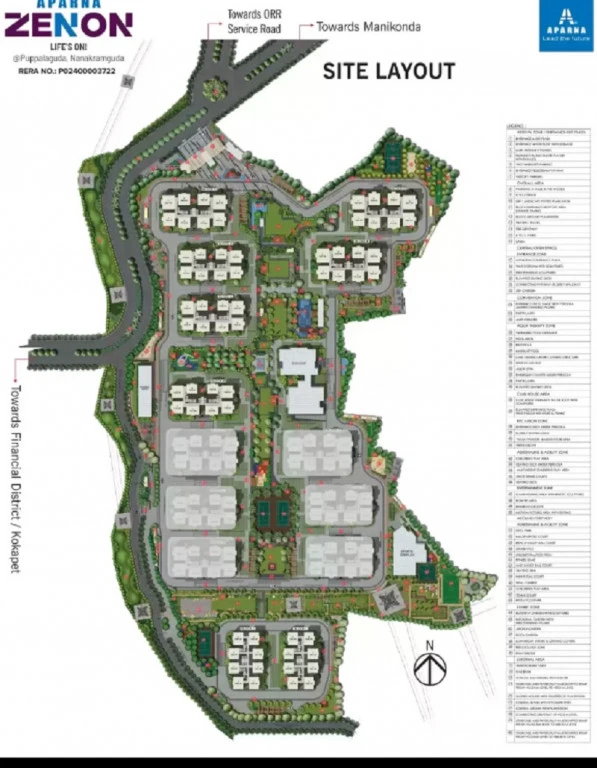 Aparna Zenon Residential projects in Hyderabad offering Apartments for sale in Puppalaguda. The property offers 1,2&3 BHK Apartments meticulously planned 2 BHK Apartments that guarantee a hassle-free lifestyle. As per the area plan it is set in 34.06 Acres and 3664 units in the size range 1020.00 sq.ft. – 2257.00 sq.ft. Possession date is Sep 2027. Aparna Zenon offers prices suitable for both luxurious and affordable Apartments in Hyderabad. Aparna Zenon is located Puppalaguda. The floor plan of Aparna Zenon enables the best utilization of the space with spacious balconies, standard kitchen size and high-quality fixtures. Location advantage of Aparna Zenon is its proximity to Reputed Schools and Colleges. Unmatched connectivity from all the important landmarks and places. Easy access to everyday utility such as hospitals, schools, supermarts, parks, recreational centers etc. In terms of facilities, Aparna Zenon is loaded with multiple offerings such as Gymnasium, Power Backup. For families with kids, there is Children Play Area. It is a Gated Community. Immerse yourself in a world of sports with provisions for Tennis Court, Basketball court, Badminton Court, Cycling. Residents can make use of Restaurants/Cafeterias, Internet / Wi-Fi, provisions in the project. There is 24×7 Security. It is one of the most admired residential projects in Hyderabad. Aparna Constructions and Estates Pvt. Ltd. is a real estate company in Hyderabad which has been recognised for its pioneering innovation in gated communities. The overall experience of the developer in the real estate industry is 22 years. Since 1996, it has undertaken quality construction of both affordable as well as luxury housing spaces with a strong emphasis on environmental sustainability. Aparna Constructions has been bestowed with ‘Rewards of being Green – Aparna Sarovar Award in 2012.’ The builder.