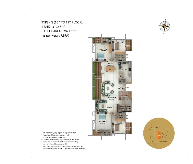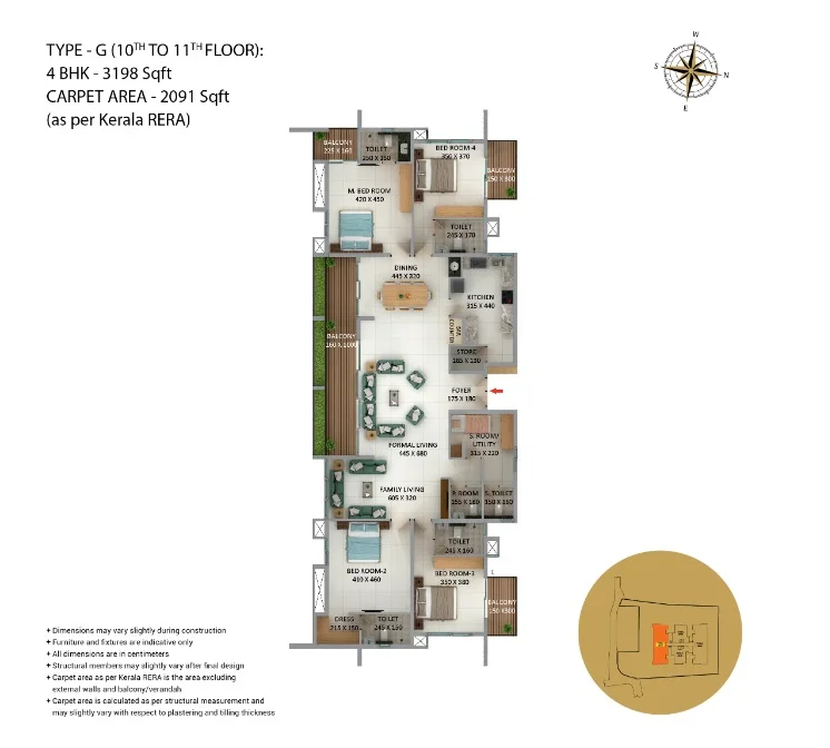 (Super Builtup Area) : 1217 – 3198 sq.ft