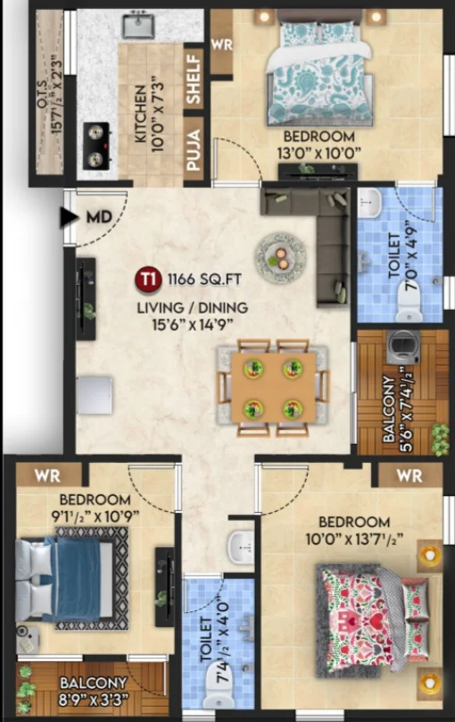 The floor plan of ATH Sun and Shine enables the best utilization of the space with spacious balconies, standard kitchen size and high-quality fixtures. Location advantage of ATH Sun and Shine is its proximity to Reputed Schools and Colleges. Unmatched connectivity from all the important landmarks and places. Easy access to everyday utility such as hospitals, schools, supermarts, parks, recreational centers etc.