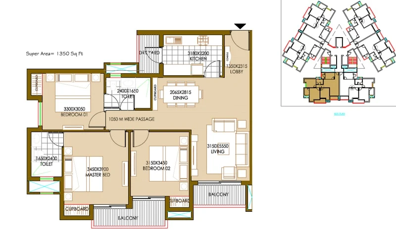 Super Builtup Area : 756 – 1210 sq.ft