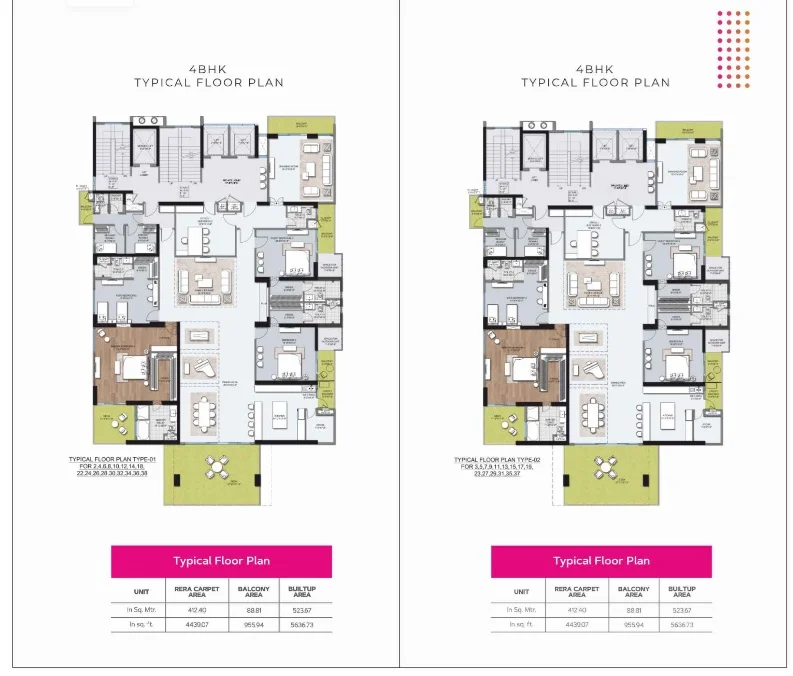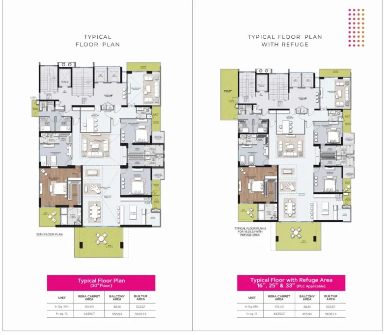 (Super Builtup Area) : 5395 – 8641 sq.ft