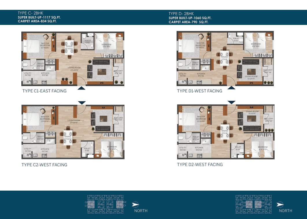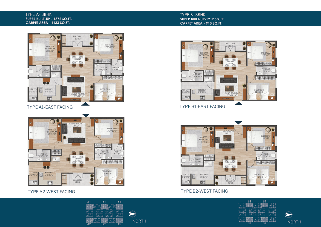 Sizes : 1117 – 1372 sq.ft.