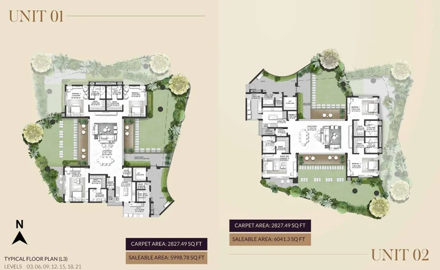 Super Builtup Area : 2827 – 5083 sq.ft
