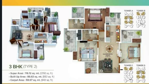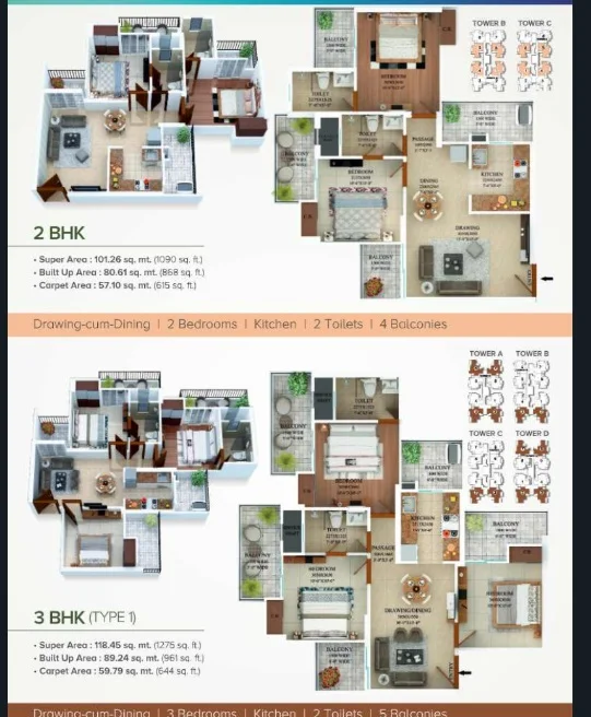 Super Builtup Area : 1090 – 1275 sq.ft