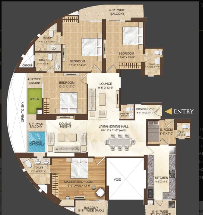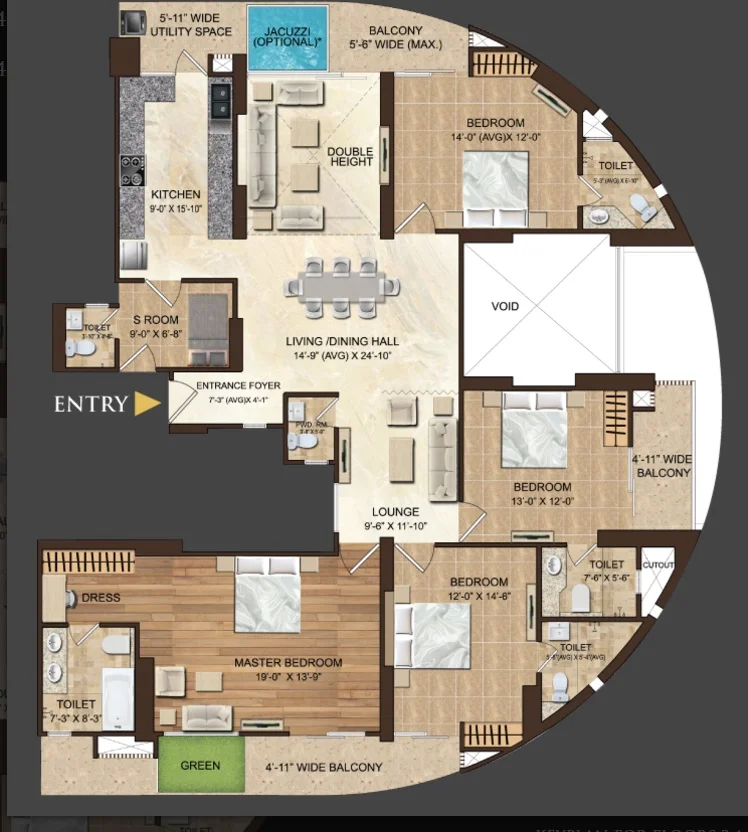 (Super Builtup Area) : 2510 – 5300 sq.ft