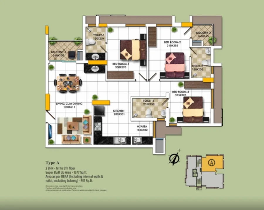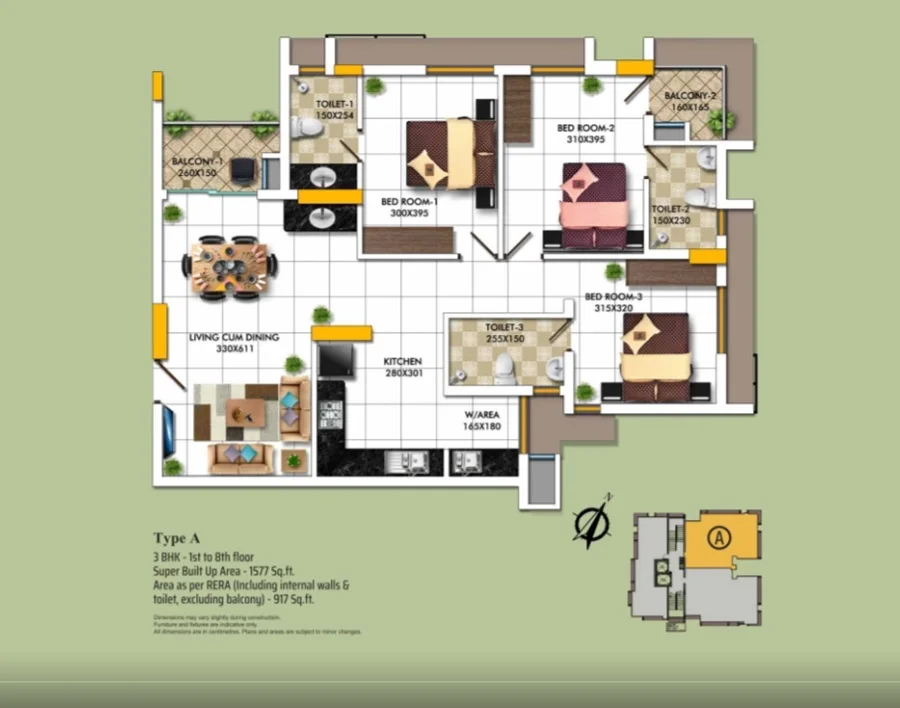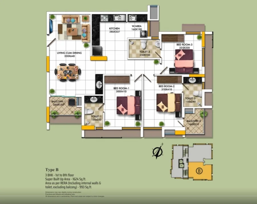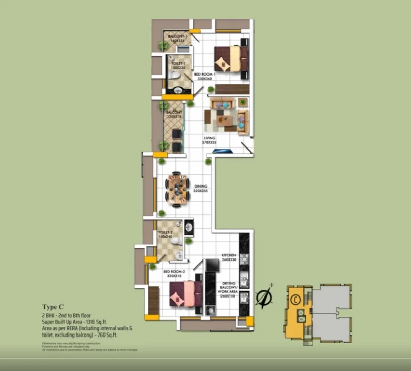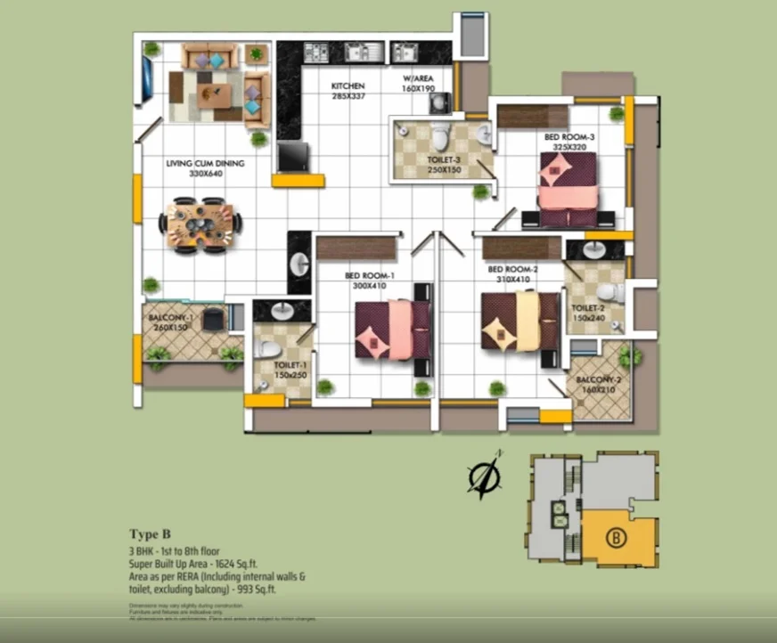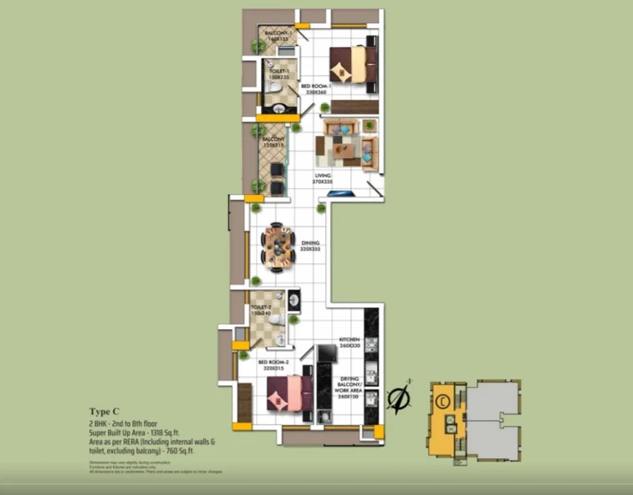 Super Builtup Area : 1318 – 1624 sq.ft