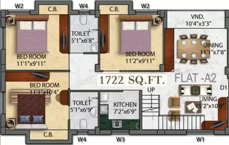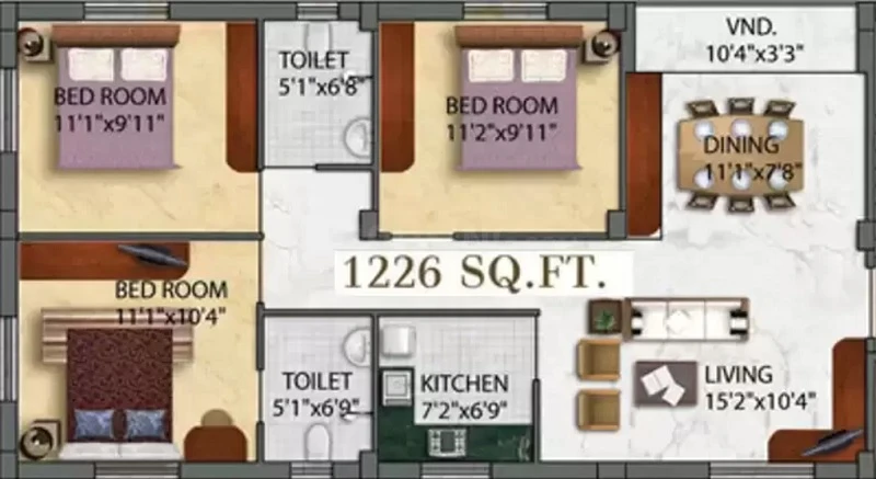 (Super Builtup Area) : 1226 – 1722 sq.ft