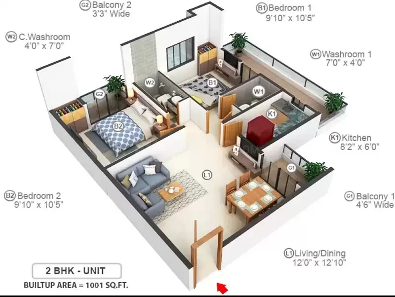 (Super Builtup Area) : 796 – 1593 sq.ft
