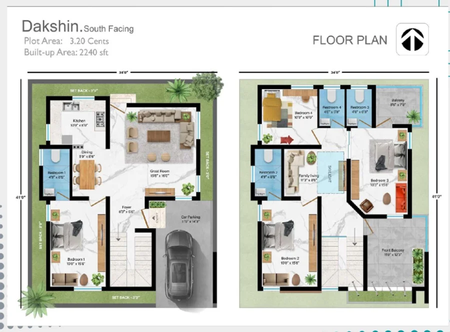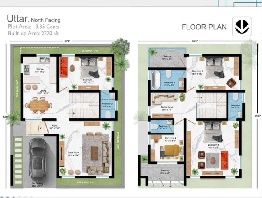 (Super Builtup Area) : 2220 – 2240 sq.ft
