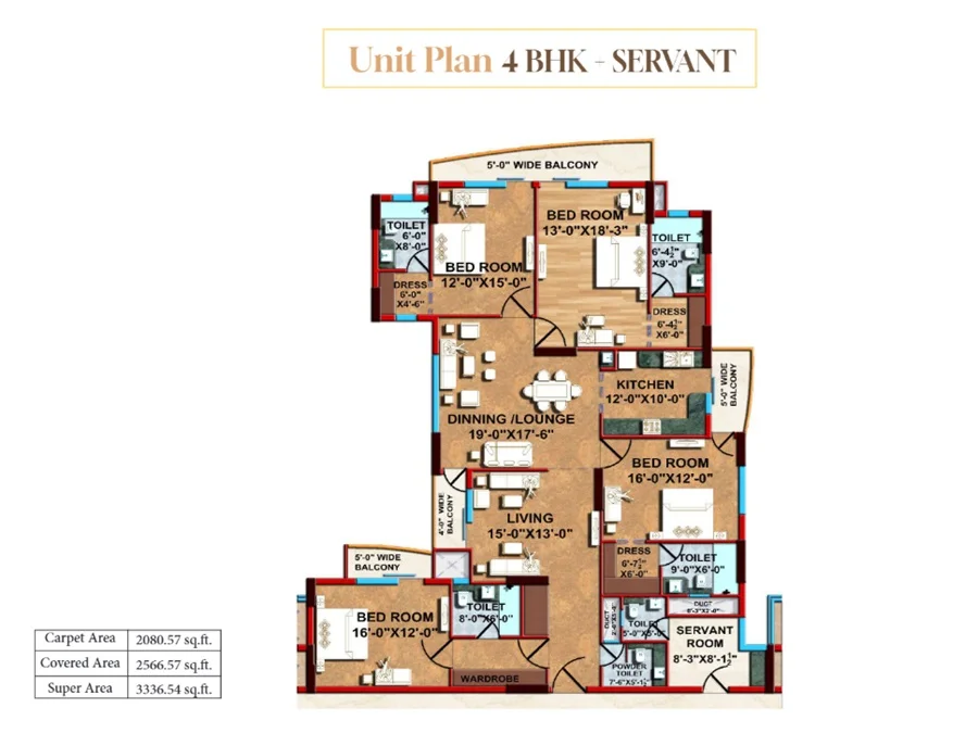 (Super Builtup Area) : 2200 – 3336 sq.ft