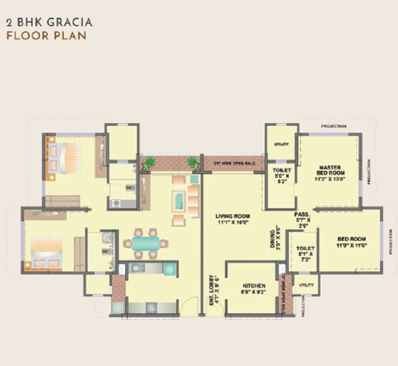 Super Builtup Area : 728 – 1100 sq.ft