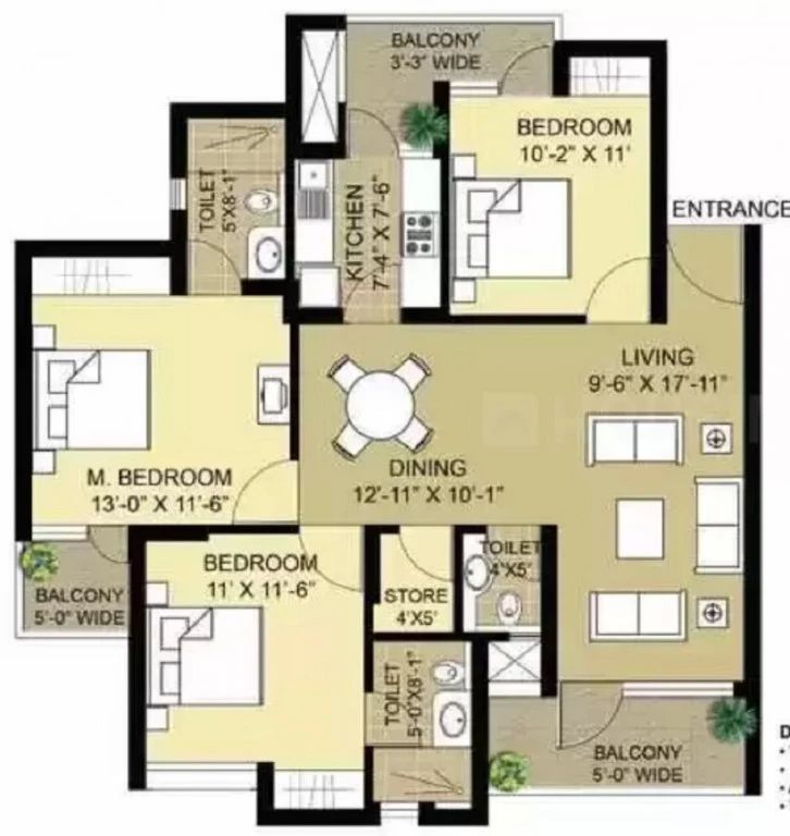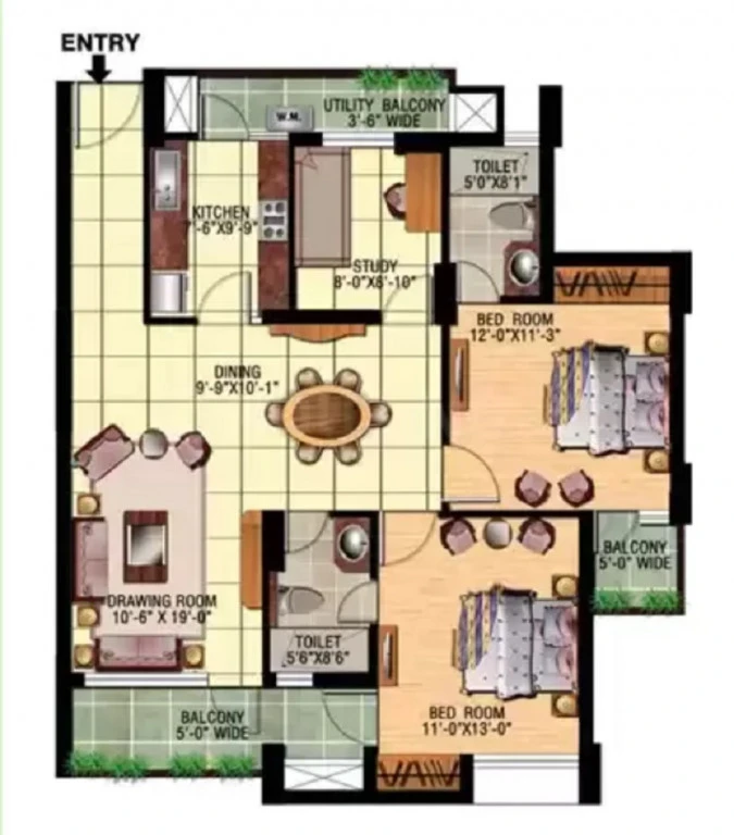 (Super Builtup Area) : 1375 – 2021 sq.ft