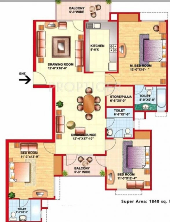 Super Builtup Area : 1420 – 1840 sq.ft