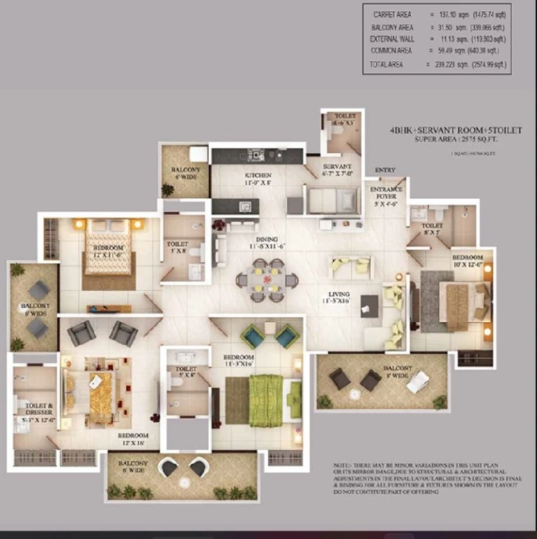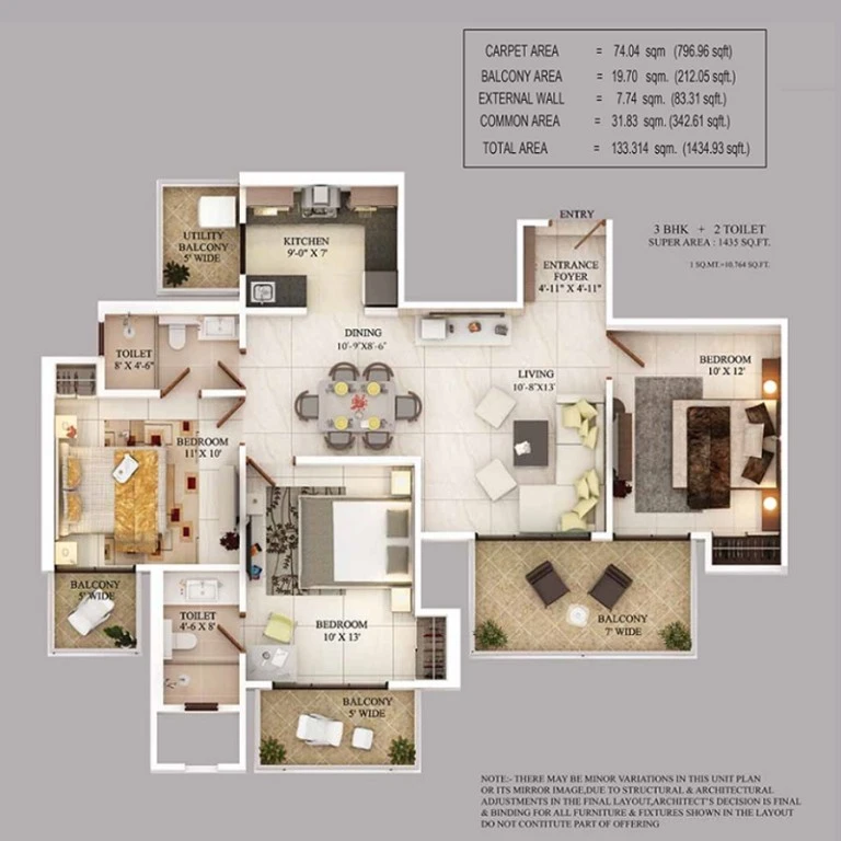(Super Builtup Area) : 1435 – 2575 sq.ft