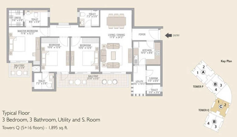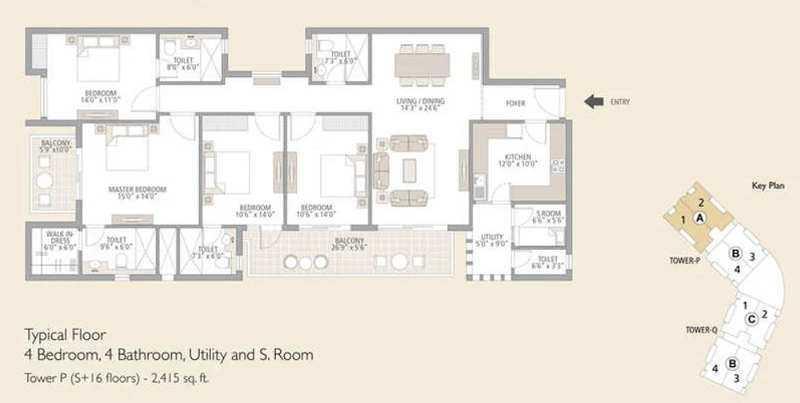 (Super Builtup Area) : 1895 – 2415 sq.ft
