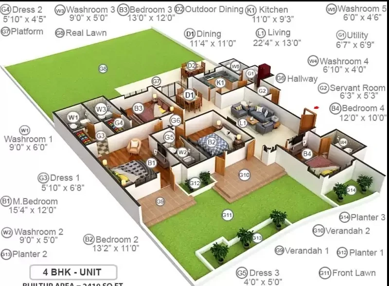 (Super Builtup Area) : 2410 – 3670 sq.ft