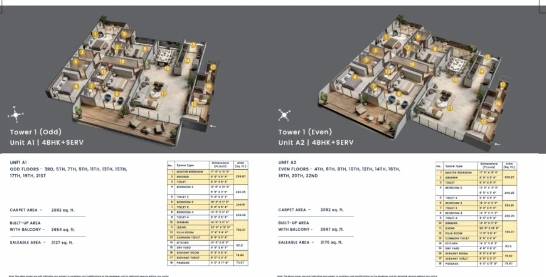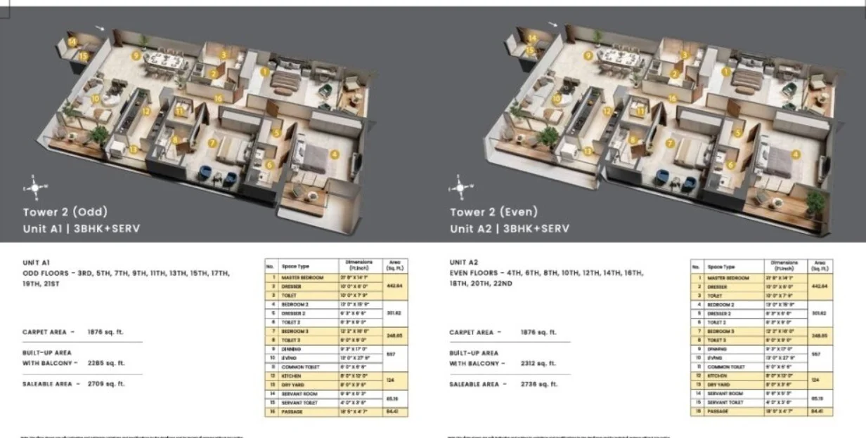 Configurations : 3,4 BHK Apartment