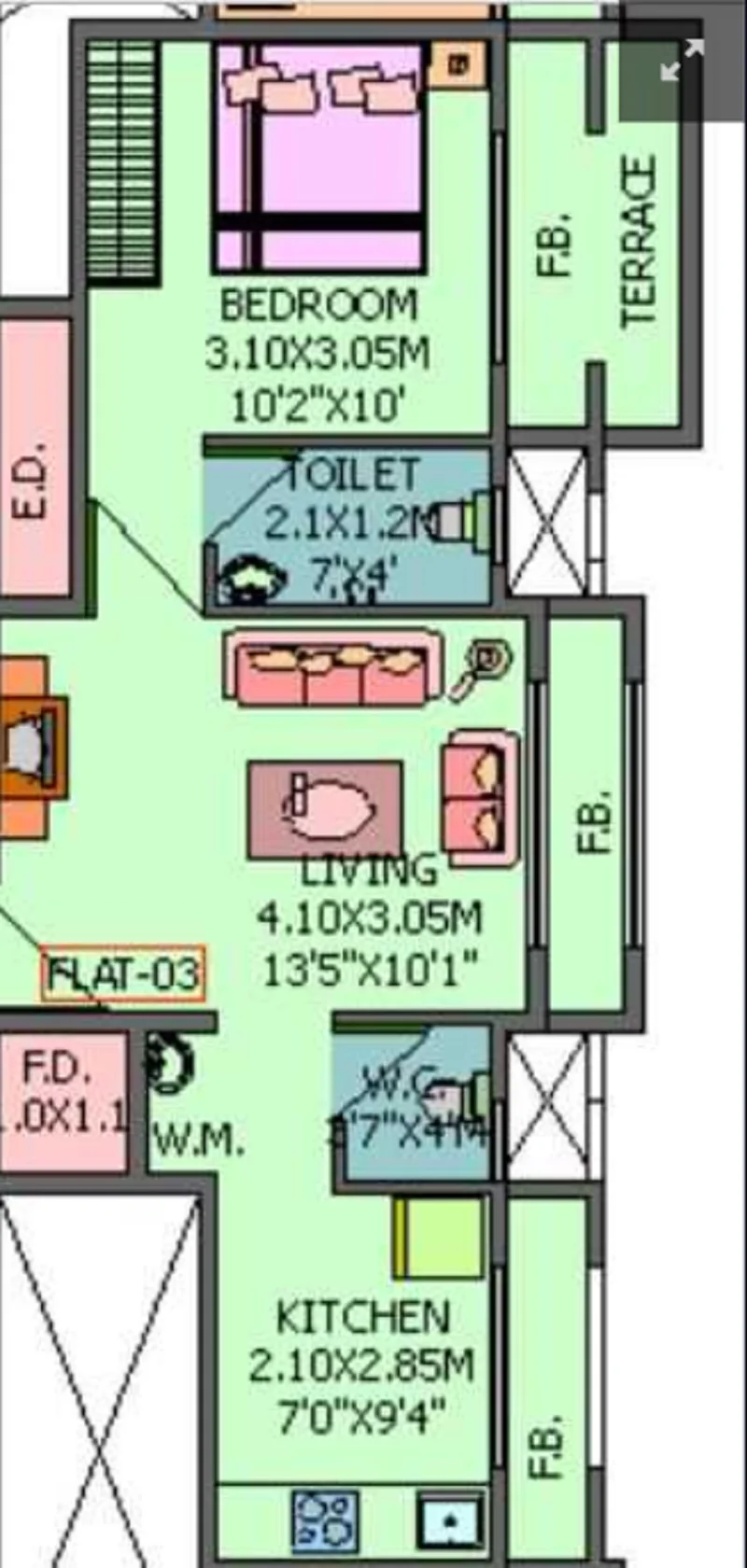(Super Builtup Area) : 705 – 1055 sq.ft