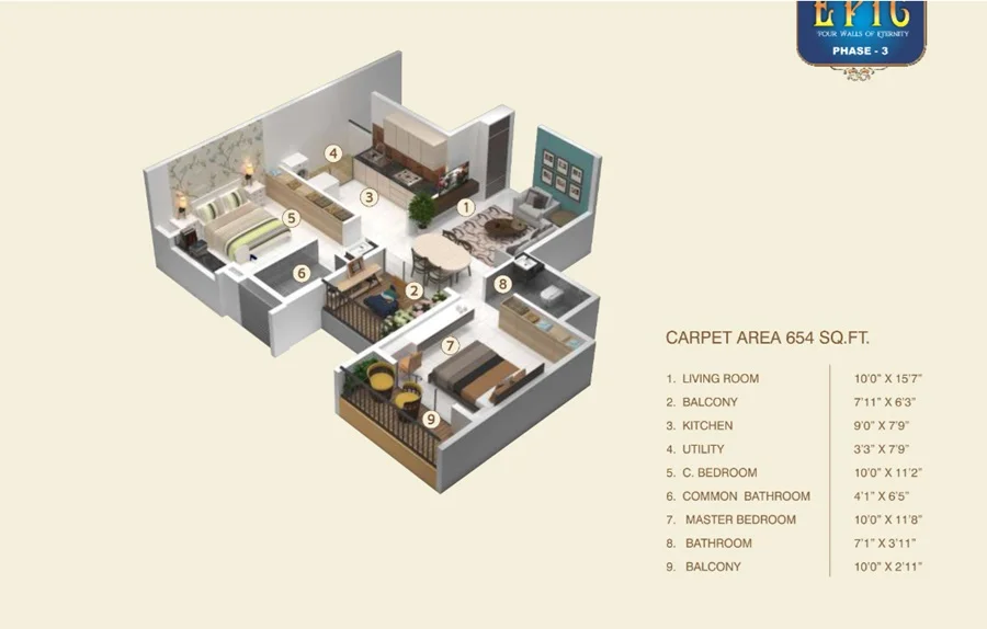 The floor plan of F5 Epic enables the best utilization of the space with spacious balconies, standard kitchen size and high-quality fixtures. Location advantage of F5 Epic is its proximity to Reputed Schools and Colleges. Unmatched connectivity from all the important landmarks and places. Easy access to everyday utility such as hospitals, schools, supermarts, parks, regional centers etc.