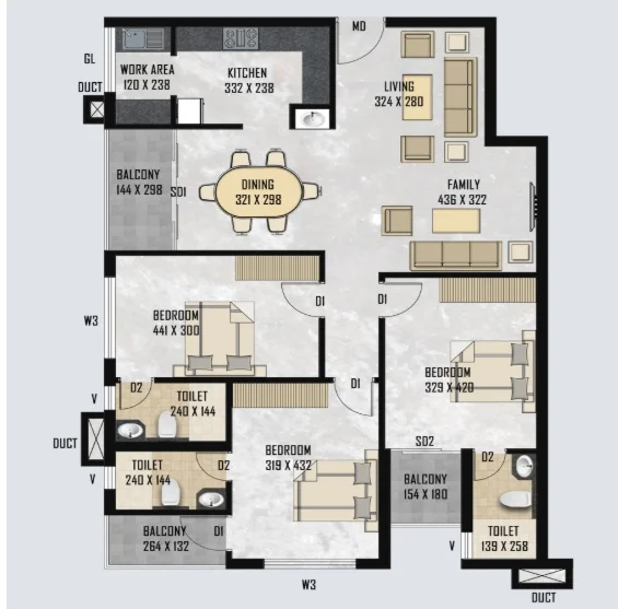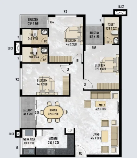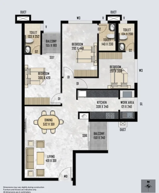 Super Builtup Area : 1121 – 1653 sq.ft