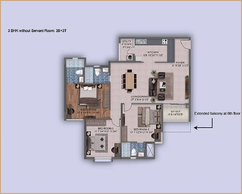 (Super Builtup Area) : 1188 – 1930 sq.ft