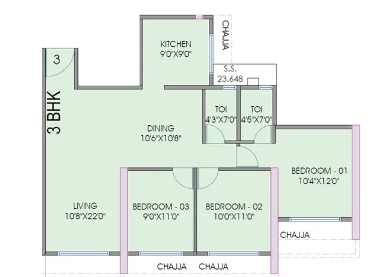 Configurations : 1,2,3 BHK Apartment