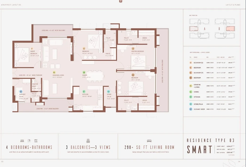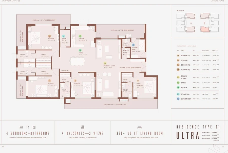 (Super Builtup Area) : 1604 – 1896 sq.ft