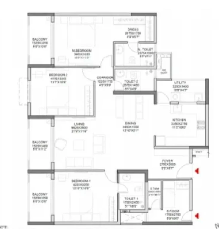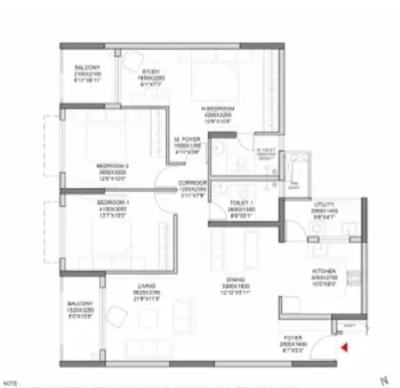 (Super Builtup Area) : 1710 – 2050 sq.ft