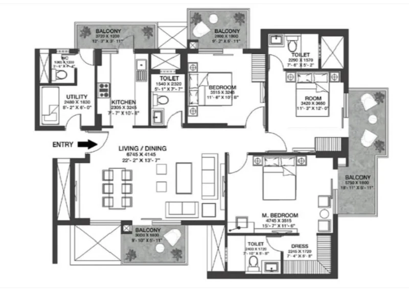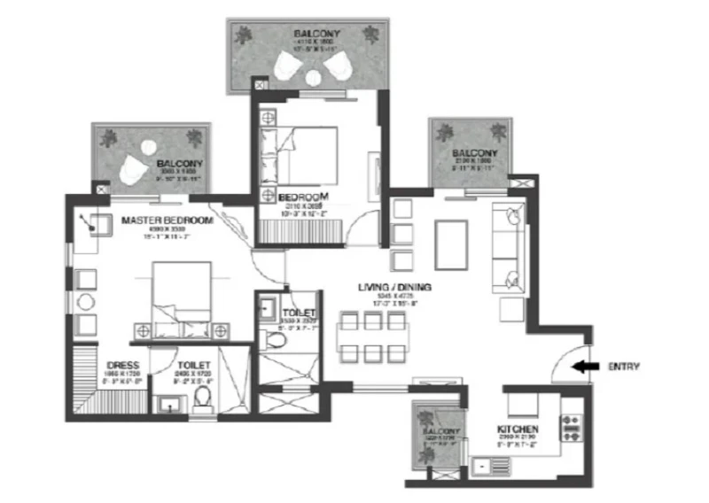 (Super Builtup Area) : 1310 – 1986 sq.ft