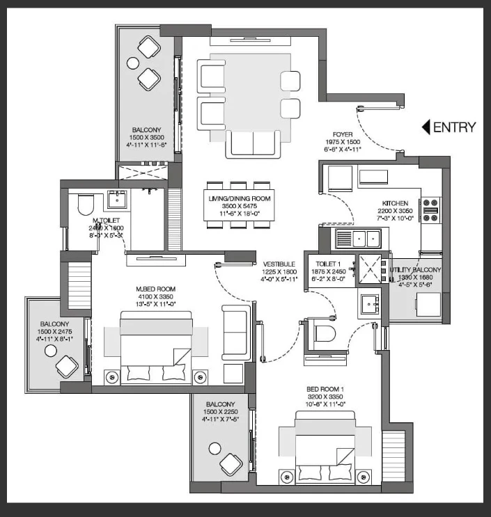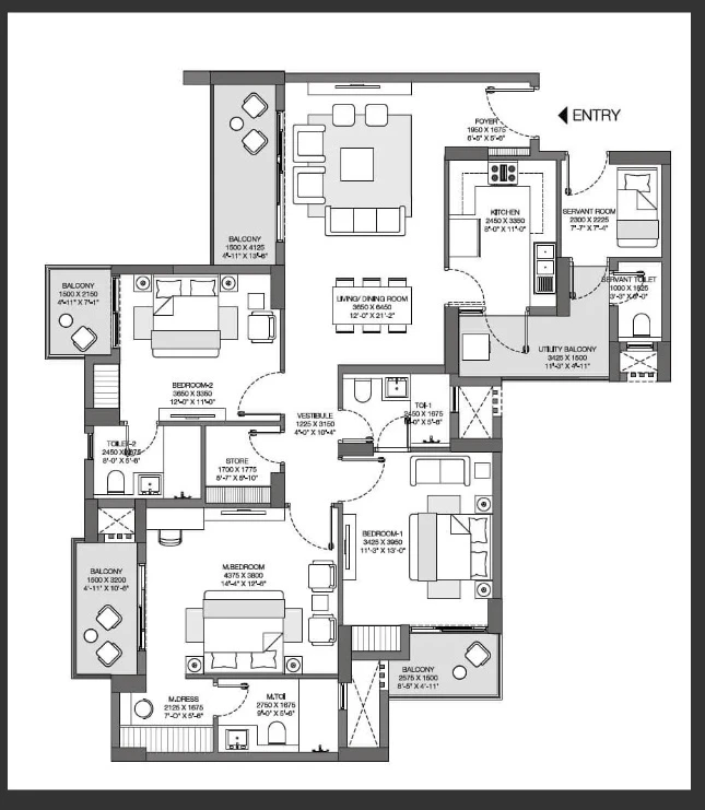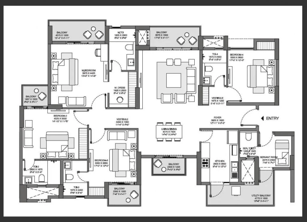 (Super Builtup Area) : 861 – 3000 sq.ft