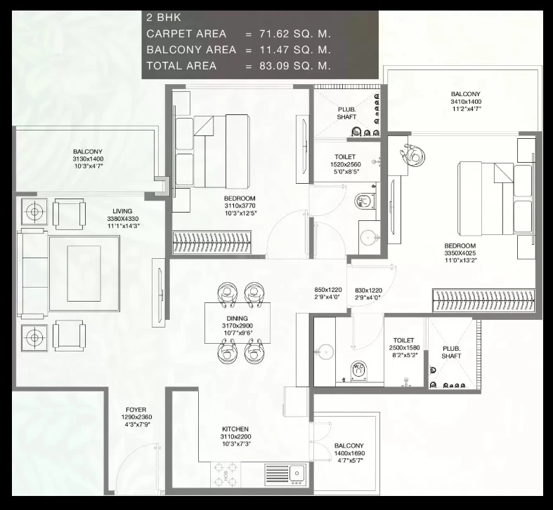 (Super Builtup Area) : 771 – 1903 sq.ft