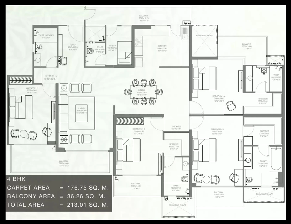 Configurations : 2,3 and 4 BHK Apartment