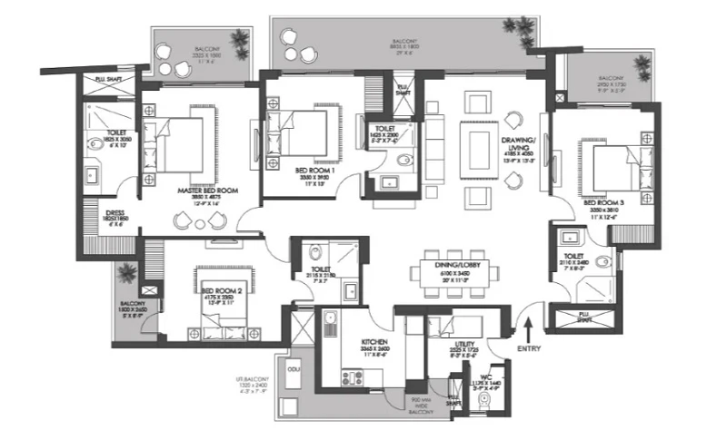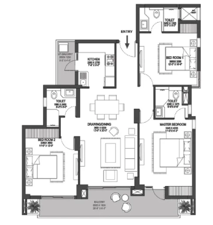 (Super Builtup Area) : 1855 – 2720 sq.ft