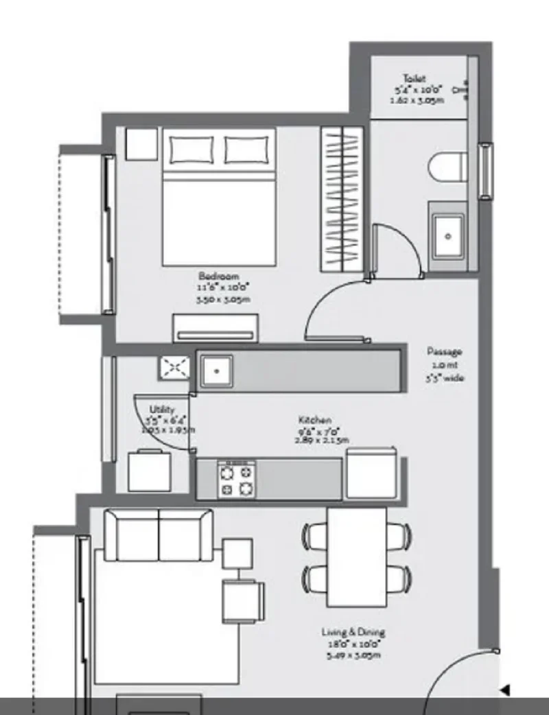 (Super Builtup Area) : 480 – 1700 sq.ft