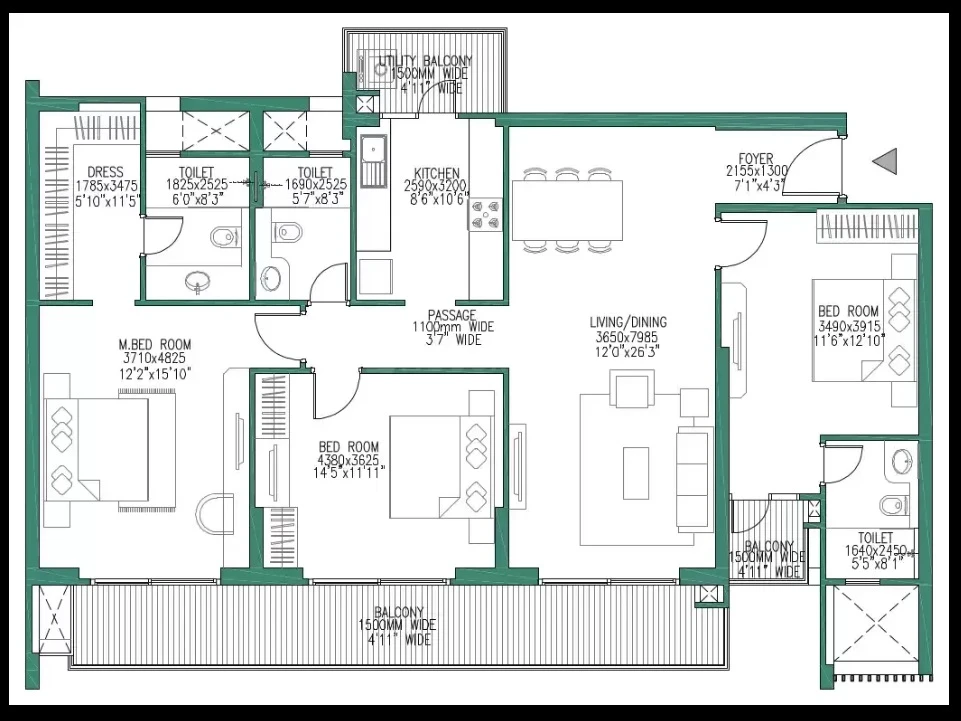 (Super Builtup Area) : 1053 – 3760 sq.ft