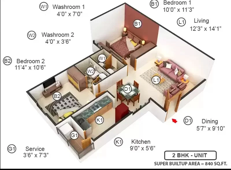 Carpet Size in Sq. Ft: 840 - 890 sq.ft