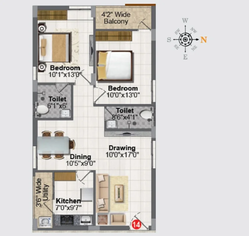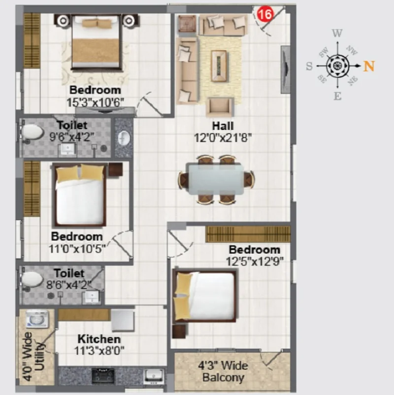 (Super Builtup Area) : 1100 – 1760 sq.ft