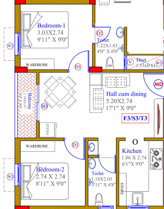 Area Unit : sq.ft.