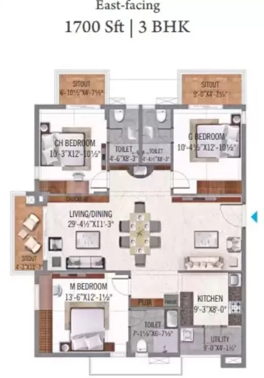 Super Builtup Area : 1285 – 1885 sq.ft