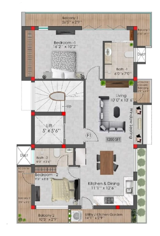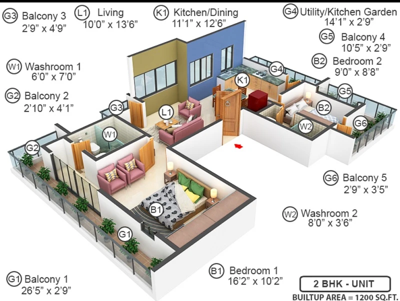 (Super Builtup Area) : 1200 – 1200 sq.ft
